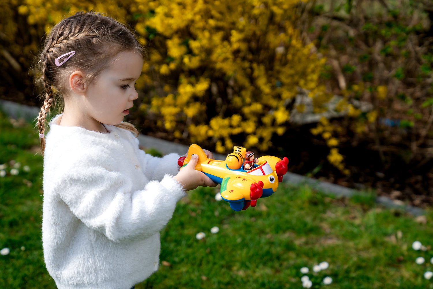 Fly through the skies on your very own jungle adventure with Johnny Jungle Plane, the motorized adventure airplane from WOW Toys, makers of safe, high-quality toys with no BPA or PVC.
